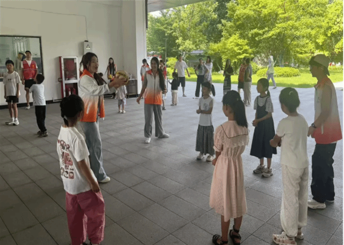 户外课程点燃夏日激情。足球场上,孩子们追逐跃动的身影与欢呼声交织;排球课从垫球基础练起,团队默契悄然生长;八段锦课堂则动静相宜,一招一式间感受传统养生文化的深邃。社区专业救护员还现场演示灭火器的使用,并结合案例科普避险知识,为安全假期保驾护航。