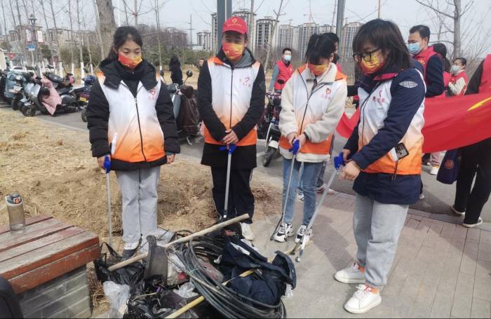 活动中,大家分工明确,各司其职,热情澎湃,不怕脏累。汴河景观带的角角落落里都有志愿者的身影,红色的志愿服如火一般鲜艳,成为了景观带最靓丽的一道风景线。