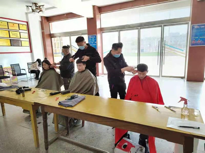 考虑到同学们因不能出校而无法理发,为帮助同学们解决“头等大事”,以更好的精神面貌投入到学习和生活中。4月2日、3日下午,学校邀请了专业的理发师在教学楼一楼大厅为同学们免费理发。为了防止人员聚集,确保安全,学生管理科组织学生分批次有序进行。理发师入校前严格检查其安康码、行程码并做好登记。理发师们技艺精湛,手法娴熟,理完发的学生们神采飞扬、更有精神。学校的学生志愿者们在一旁组织大家排队,及时清扫地面的发丝,让理发活动更加顺利高效。
