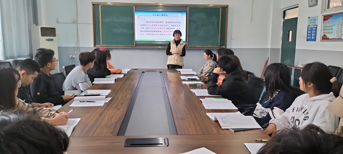 为加强心理委员对岗位职能的认知,提升心理委员的工作能力,更好发挥朋辈互助作用,2022年4月5号下午,工程技术学院心理健康辅导中心教师、国家二级心理咨询师王红在教学楼一楼108室对学院25名心理委员进行培训。