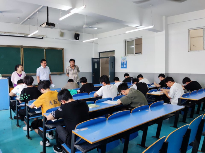 考试过程中,院长王绍卫等院领导在教务、学管相关人员的陪同下,深入考场一线检查指导工作。巡考过程中,院领导认真查看考试安排、考风考纪、考场秩序、试卷命题等,对本次考试秩序予以肯定;监考教师以高度的责任心投入到监考工作,工作细致严谨,认真履行监考职责,严格执行考场纪律;同学们自觉遵守学院考试纪律,遵守学院疫情防控工作要求,考场规范有序、秩序井然。