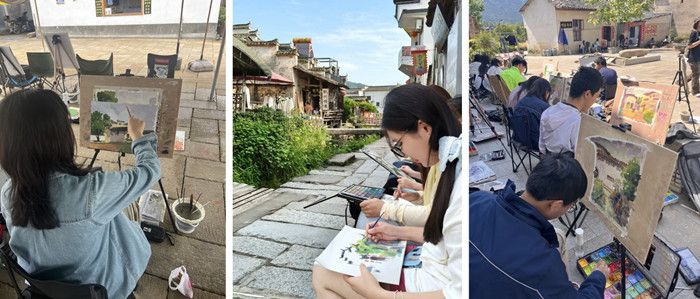 在积累了丰富的速写素材后,同学们迎来色彩写生与创作阶段。用色彩去诠释眼中的古村,通过色彩的运用和搭配,展现古村的独特韵味和氛围。
