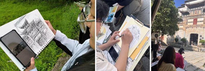 在此次写生实践教学中,屏山村独特的徽派建筑,如马头墙、砖雕门楼等,为学生提供了绝佳的实践课堂。同学们在7天的沉浸式学习中,掌握了建筑写生核心技法,领悟到传统建筑文化价值,体会到团队协作的重要性。学院将以此为契机,推动艺术教育与乡村振兴相结合,为培养应用型人才探索新路径。